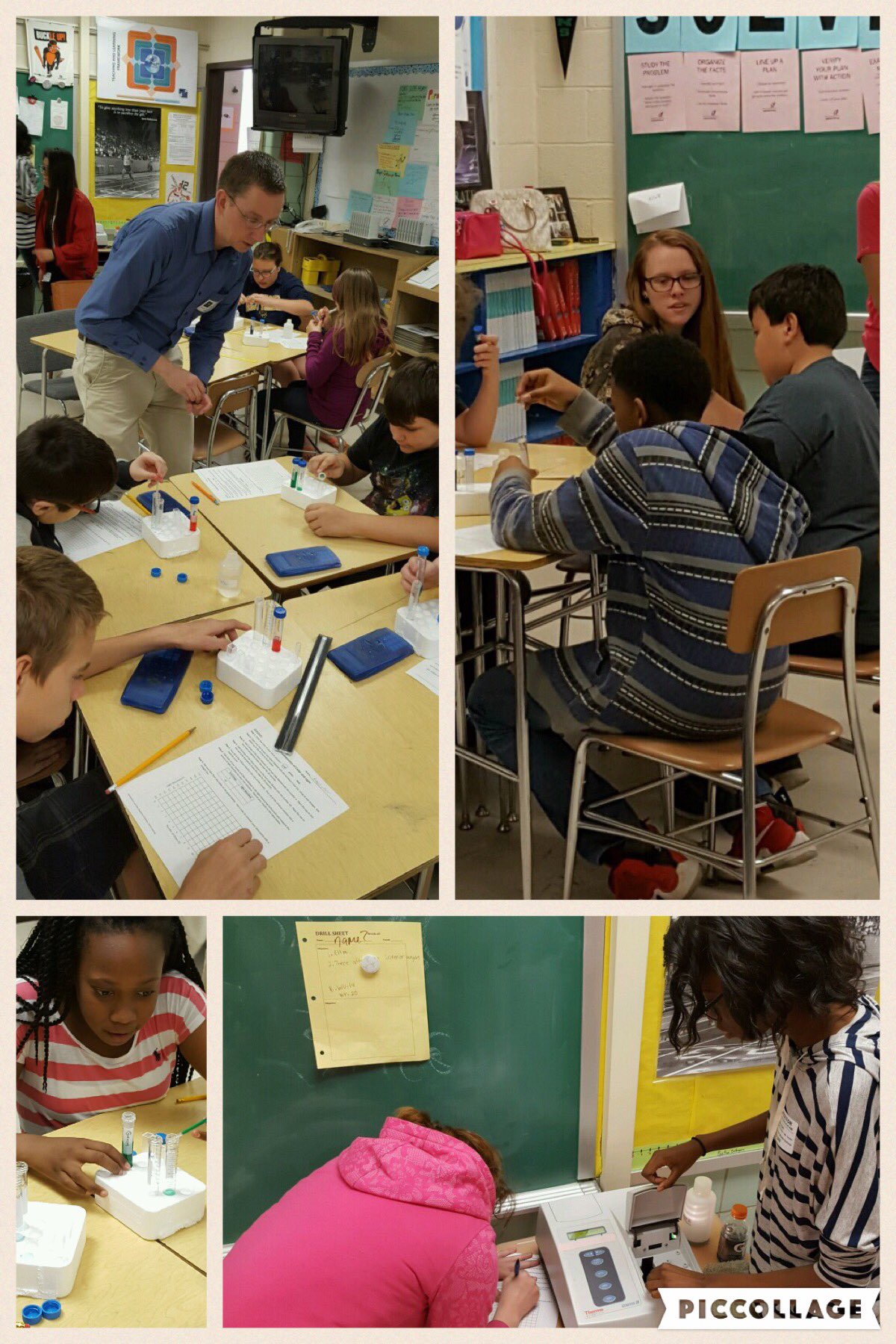— Group members were joined by students from Patapsaco High School in delivering our annual outreach program at General John Stricker Middle School. The program, entitled The Mathematics of Color and Light, uses hands-on water chemistry activities to illustrate the importance of mathematics to scientific questions and careers.